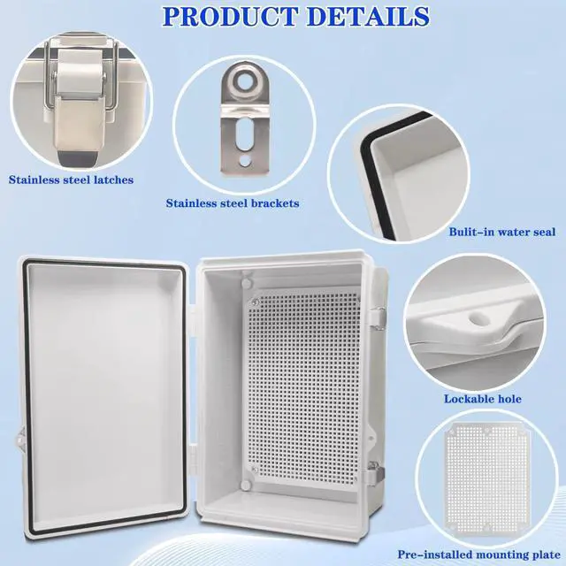 EASY FOR DIY - Simple hinged cover, easy open and close, Stainless steel latches make it more durable and provide better waterproof performance. This junction box can be drilled and shaped easily without cracking, so its also suitable for your various DIY projects.safety lockable design to prevent un-authorized openings