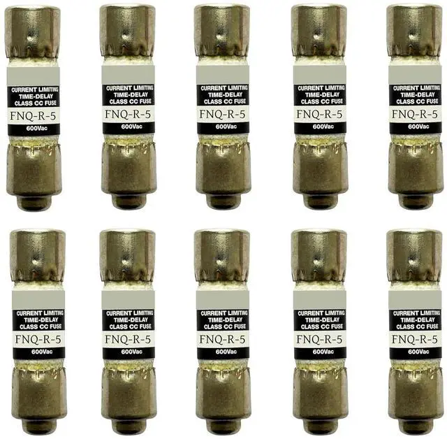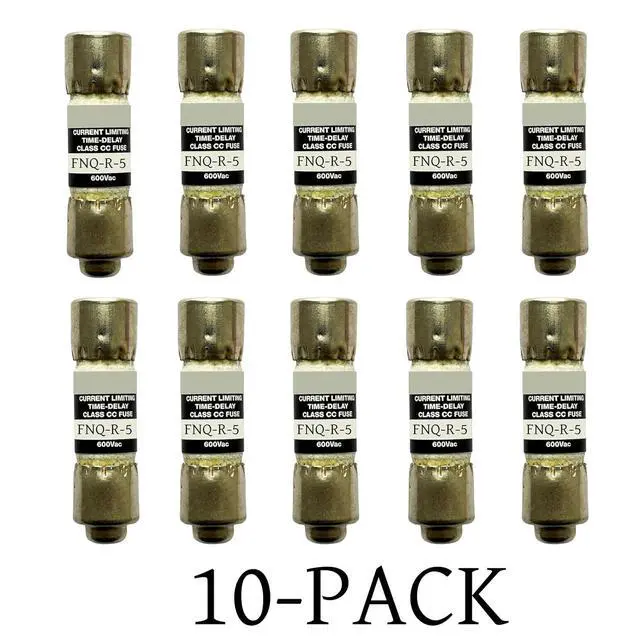 Part number: FNQ-R-5in box and pack of 10 PACK Fast-acting supplemental electrical fuse Highly current-limiting for low peak let-thru current Improved cycling ability for frequent motor starts/stops without nuisance fuse opening
