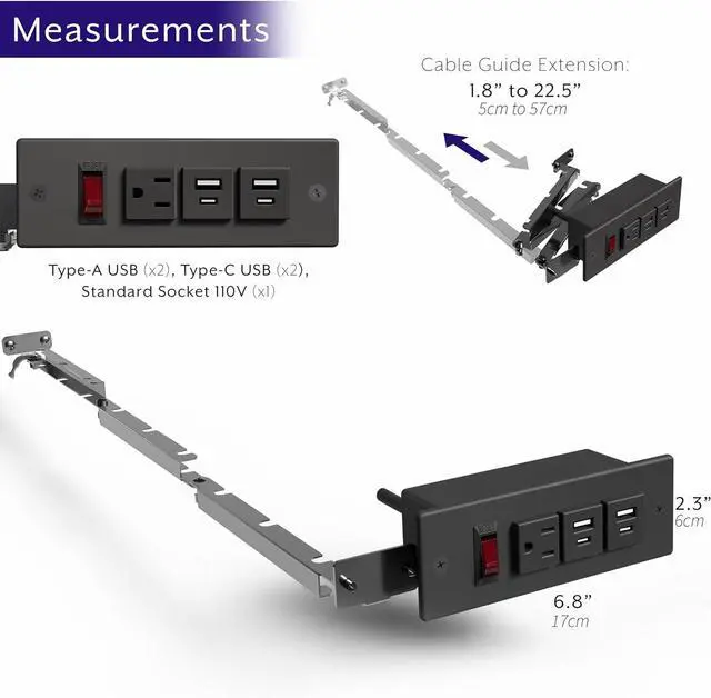 Cable Management - Zip ties are included to keep the power strip cable neat and organized while routed through the cable guide.
