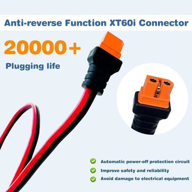 The XT60 connector on this cable features an additional pin, which is specifically designed to be detected by the ecoflow power station.This additional pin allows for the removal of the current limit on the input, resulting in improved charging efficiency compared to a standard XT60 connector cable.
