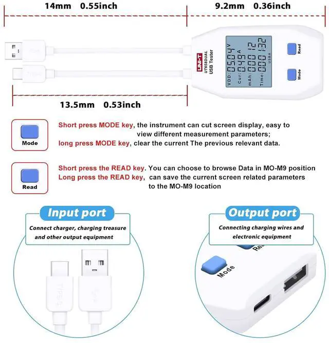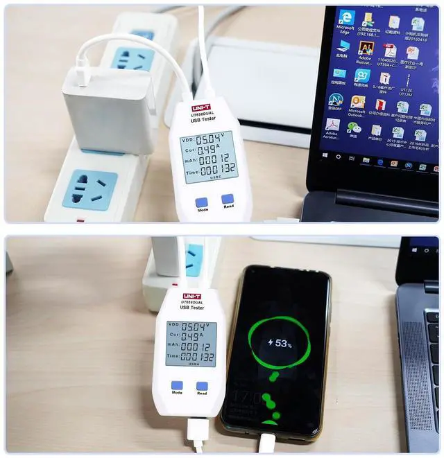 PORTABLEThe second generation UT658 series USB testers can inspect USB chargers, portable power sources, data cables and other electronics charging devices