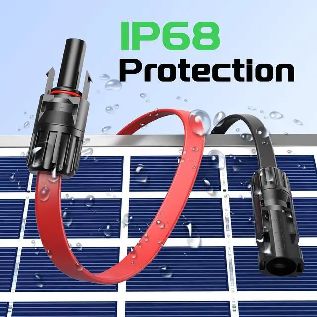 [IP68 Protection and Durable] Waterproof level up to IP68, which allows the solar extension cable to work outdoors for a long time. PVC material jacket which is fireproof, corrosion resistant, and UV resistant, can withstand extreme heat and cold -4~176(-20-80). EXL9330 material Solar connectors have a 25+ years lifespan.