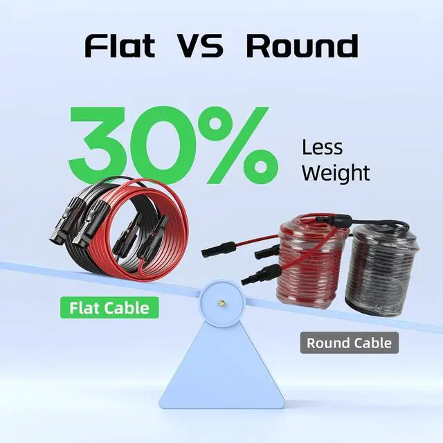 [More Portable] This flat solar wire is 30% less weight than normal solar cable. Featuring a flat design, the PV cable occupies less space when coiled for storage.