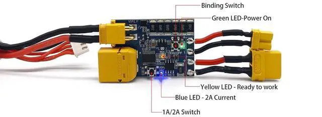 1 Amp and 2 Amp threshold selector, 1A for small and sensitive build , 2A for large build, both XT60 and XT30 available.