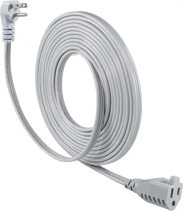 Flat Plug & Parallel 3 Core Flat CordThe plug features a right-angle design off to the downside. SPT-3 wire remains flush to the wall allowing furniture & appliances to be placed safely close to the wall. Link additional extension cords, power strips, surge protectors, plug adders, and devices up to a max of 1875W. Maximize space on your power strip, surge protector, or wall outlet. When plugged in makes it flat and convenient for tight spaces.