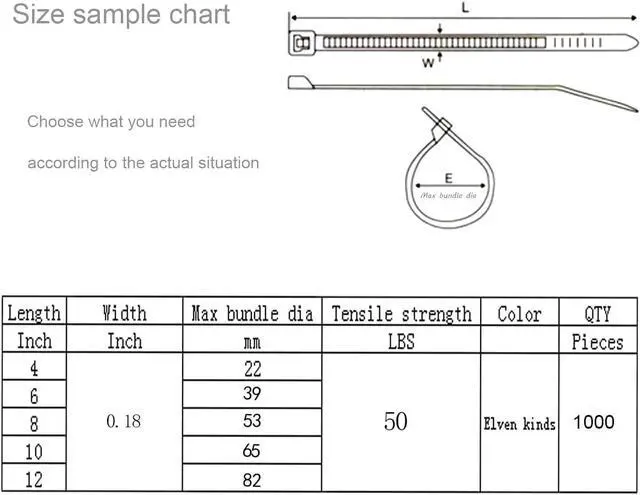 Great DesignSelf-locking fastener design, sturdy and durable, easy to operate. The width of our cable tie is 0.18 inch/4.8 mm, which makes the cable tie stronger than the same size cable tie on the market and tensile strength could handles most purpose of binding in life.