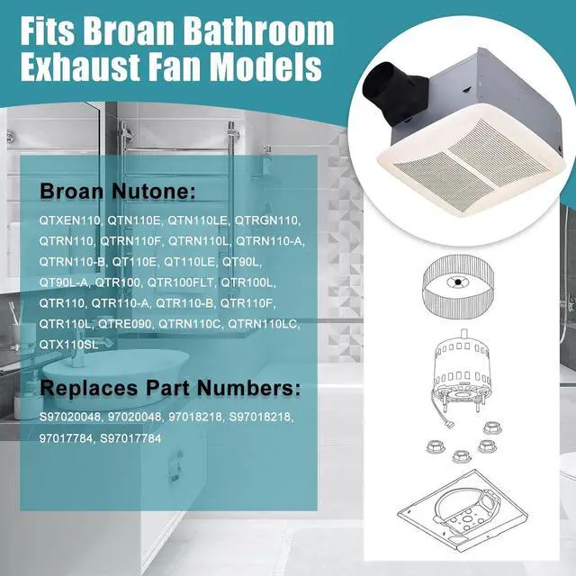 Compatibility: Fan Motor Replacement Fits for Broan Nutone Bathroom Exhaust Fan Models: QTXEN110, QTN110E, QTN110LE, QTRGN110, QTRN110, QTRN110F, QTRN110L, QTRN110-A, QTRN110-B, QT110E, QT110LE, QT90L, QT90L-A, QTR100, QTR100FLT, QTR100L, QTR110, QTR110-A, QTR110-B, QTR110F, QTR110L, QTRE090, QTRN110C, QTRN110LC, QTX110SL. Replace Part Numbers: S97020048, 97020048, 97018218, S97018218, 97017784, S97017784