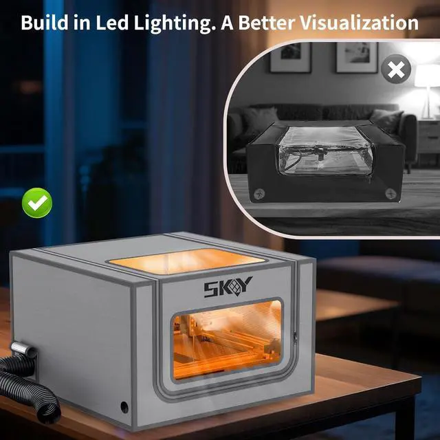 [Enclosed Design, Isolate Smoke] This Enclosure not only keeps the laser engraver from water and dust, but also isolates noise, fire, smoke and odors generated by the laser engraver during working. Bring a more comfortable engraving experience