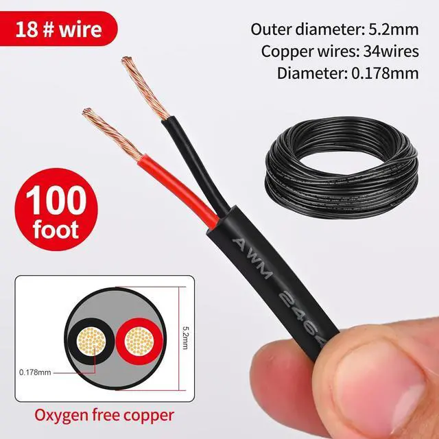 18/2 wire has the characteristics of high conductivity,low resistance,soft,and can be twisted and extended at will Easy to peel and cut.and suitable for low voltage (5V-110-300V) installations.