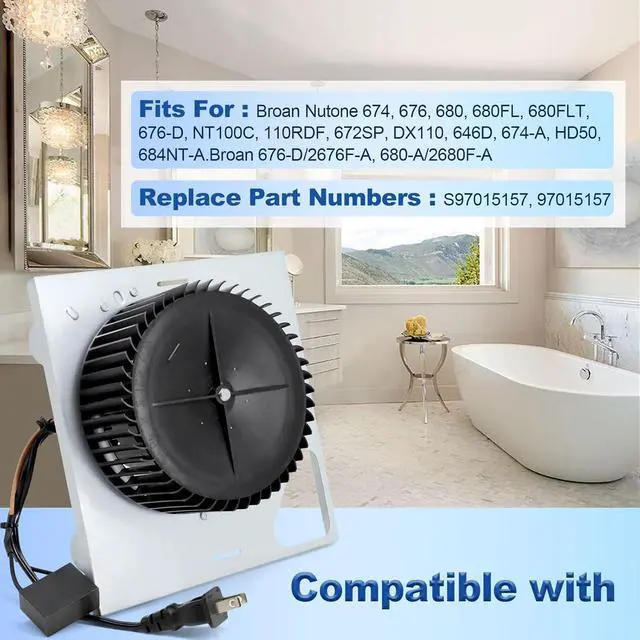 Great Replacement:The S97015157 motor designed specifically for Broan NuTone exhaust fans to easily replace old or damaged motors and restore fan performance. No need to replace the entire fan assembly, saving your costs and time. It is an economical and efficient solution for repairing old bathroom exhaust fans