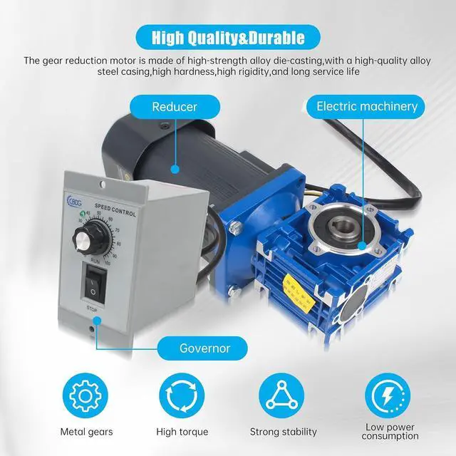 High Quality and Durable: The gear reduction motor is made of high-strength alloy die-casting,with a high-quality alloy steel casing,high hardness,high rigidity,and long service life; Adopting thick all copper coils, with low heat generation, good electrical performance, more stable and smooth motor power output, and a lifespan 10 times that of ordinary coils