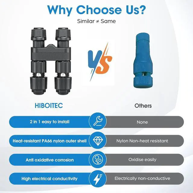 Built to Outlast Your GardenReinforced nylon shell + corrosion-proof brass pins ensure decades of flawless conductivity.Unlike flimsy plastic rivals,our low voltage wire connector wont crack under UV rays or shatter when stepped on.