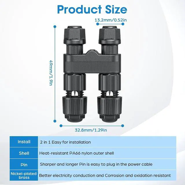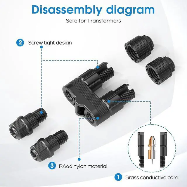 IP65 WaterproofEngineered with rugged nylon housing,these waterproof landscape lighting connectors laugh off rain,snow,sprinklers,and pool splashes.Survives -40°F to 185°F extremes -no cracking,no corrosion!