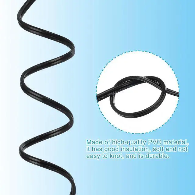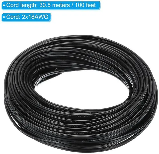 Specification: Material: PVC, Copper; Color: Black; Power Cord: 2x18AWG; Voltage: 300V; Rated temperature: -20 to 105; Wire outer diameter: 3.4 x 6.7 mm/ 0.13 x 0.26 inch; Wire Length: 30.5 meters/ 100 feet; Packing list: 1 roll of PVC covered wire