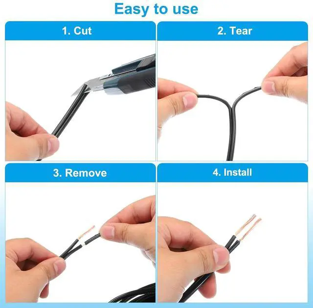 Instruction 1. Easy to use, cut it in the length you want. 2. Then you can cut off the PVC at the end of the wire to expose the copper core. 3. Wiring and connecting.