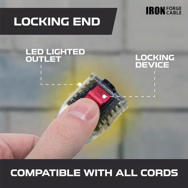 Premium Heavy Duty Extension Cord 25 Ft - This SJTOW oil resistant extension cord 12 AWG is Iron Forge Cables Premium line with Locking outlet that is compatible with any cords, preventing interruption during use. It is the only cord you will ever need! Perfect extension cable for both indoor and outdoor use. Ideal for contractors on a construction site, in the farms, ranches, mechanics, carpenters, HVAC, ac air conditioner, major appliances, saw, grinders, and more!