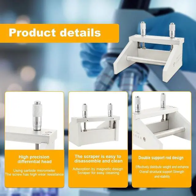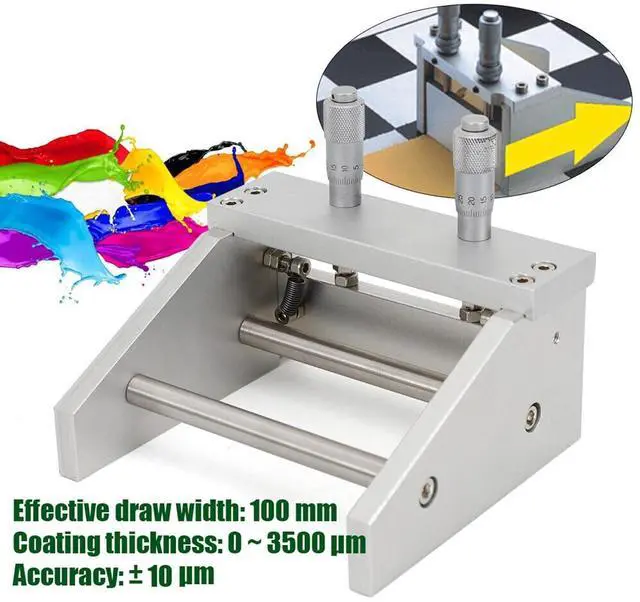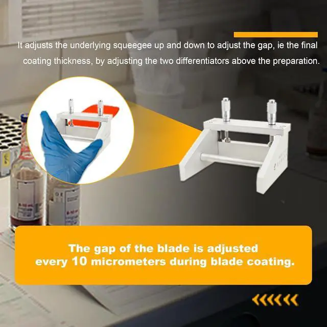 The KTQ-II adjustable fabricator is suitable for the study of accurate evaluation of thin film thickness. By adjusting the two differentiators above the fabricator, it can adjust the scraper below to control the gap, that is, the final coating thickness.