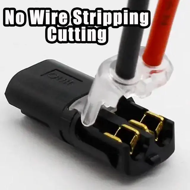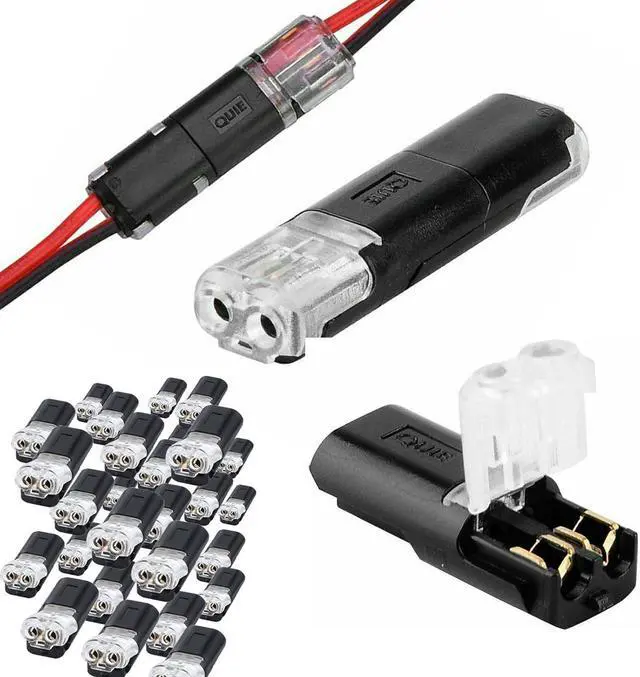 Double Wire Plug In Connector: Reduces wiring time by 70%! Just lift the handle, insert the wire, push the handle closed, hold it tight and make a solid connection. There are test holes on the surface of each cage. You do not need to remove the tape for electrical testing. Please note that to complete the wiring you need two connectors and then the two connectors are plugged together to complete the wiring.