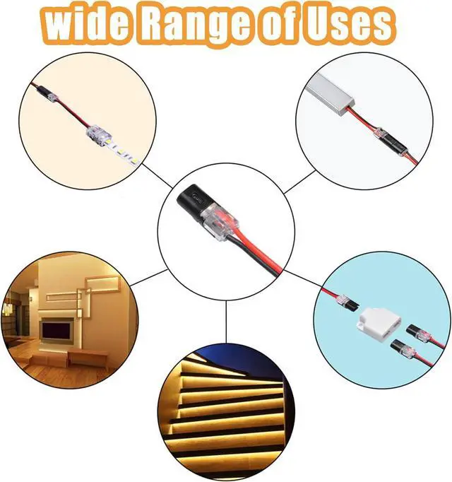 Widely Used: The wire connectors perfect for all vehicle, audio, video, speaker, led strip lights installation and other electrical equipments. It is widely used for low voltage solderless small gauge wire, low-loss in-home.
