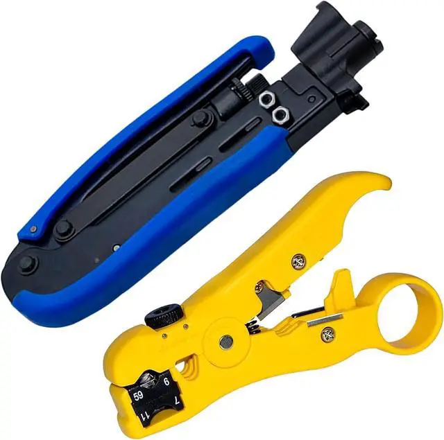 Gaobige Coax Cable Crimper Kit, Coaxial Compression Tool Adjustable RG6 RG59 RG11 75-5 75-7 Coaxial Cable Stripper with 20PCS RG6 Connectors, 10PCS Female to Female Connectors, 6PCS RG11 Connectors