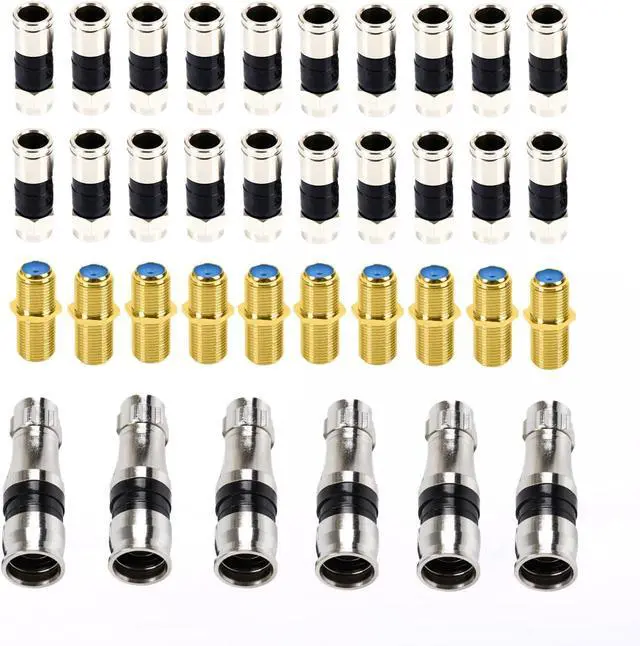 Coax Cable Crimper Kit, Coaxial Compression Tool Adjustable RG6 RG59 RG11 75-5 75-7 Coaxial Cable Stripper with 20PCS RG6 Connectors, 10PCS Female to Female Connectors, 6PCS RG11 Connector