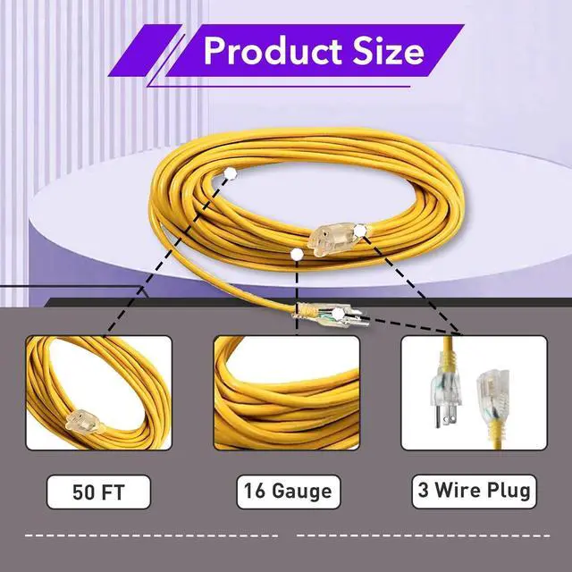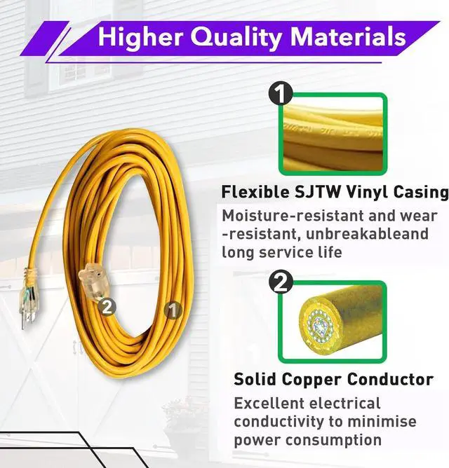 Durable Materials: This extension cord for ProTeam features a heavy-duty construction with a 16-gauge SJTW wire, wear-resistant, unbreakable and long service life