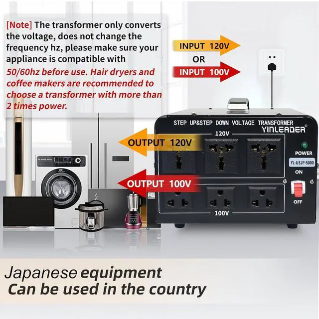 Voltage transformer 120V to 100VIt converts 120V supply voltage in the U.S., Canada and Mexico to 100V for use in Japanese appliances;