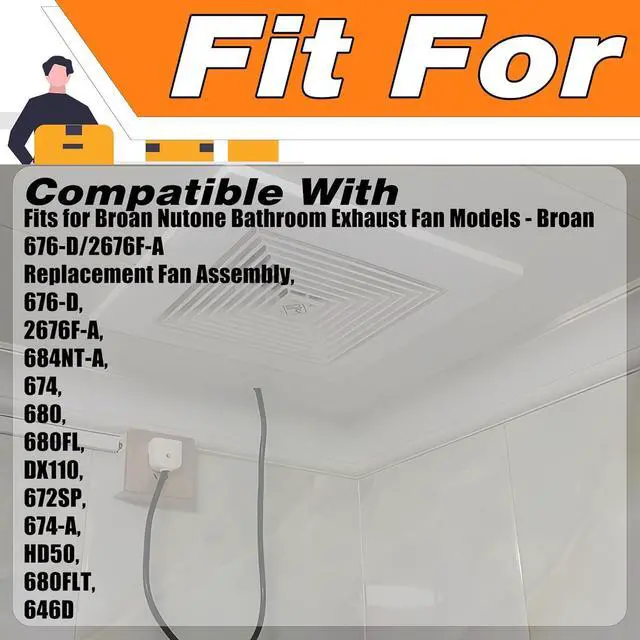 Compatible with: Broan Nutone Bathroom Exhaust Fan Models - Broan 676-D/2676F-A Replacement Fan Assembly, 676-D, 2676F-A, 676D, 684NT-A, 674, 680, 680FL, DX110, 672SP, 674-A, HD50, 680FLT, 646D.