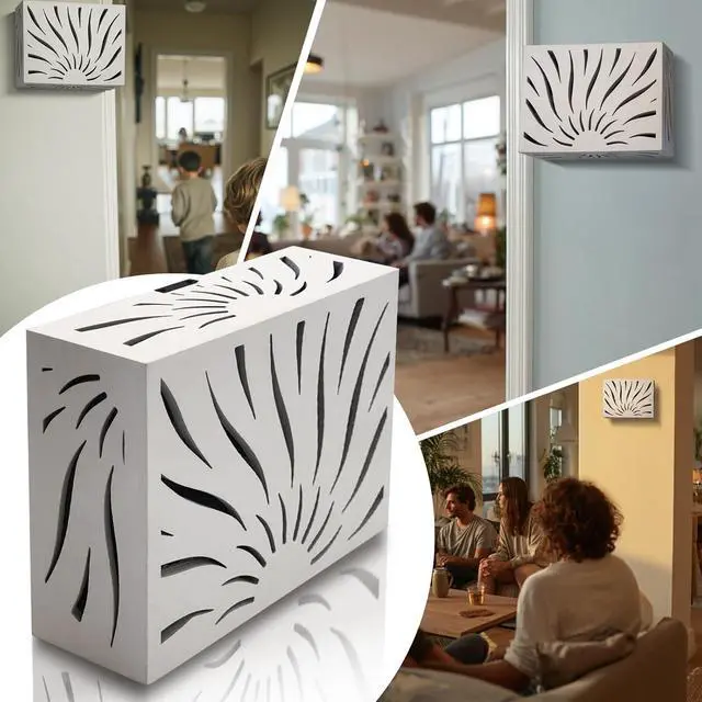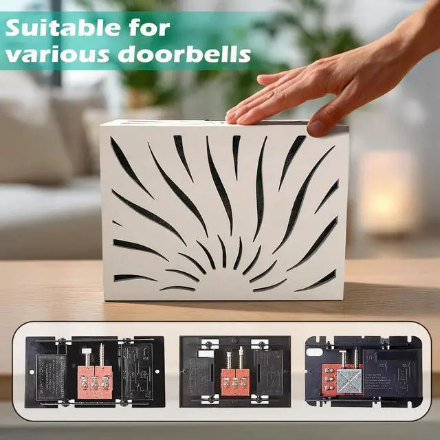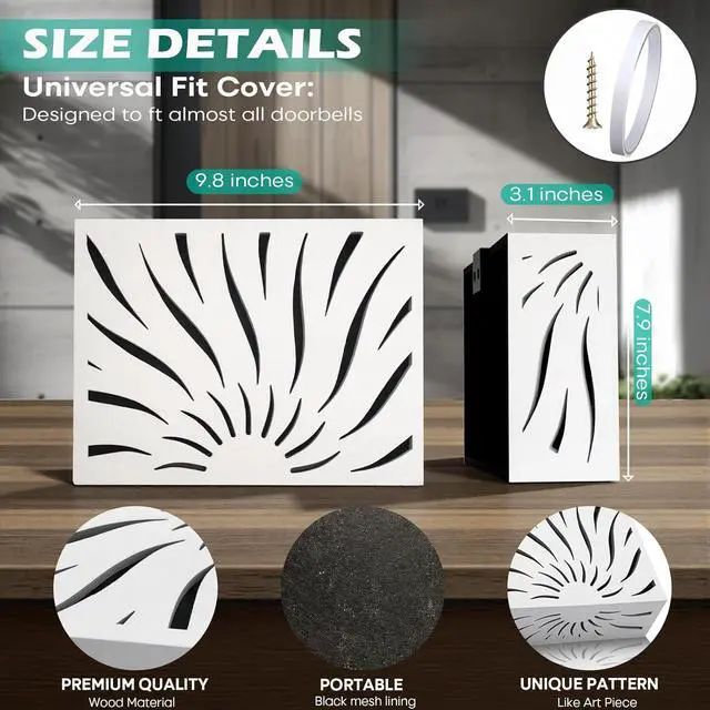 Wooden Doorbell Cover Decorative White Wall-Mounted Door Chime Box Stylish Wood Doorbell Chime Cover for Home Renovation & Decor Upgrade (SUN RAYS (9.84 x 7.87 x 3.15))