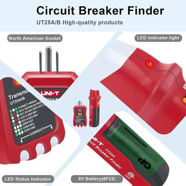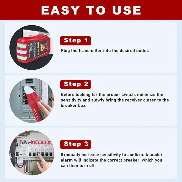 AC 90-120V Circuit breaker finderIdentifies circuit breakers on energized 120V electrical systems,it Compatible with standard 90 to 120V AC 50/60Hz breaker system.