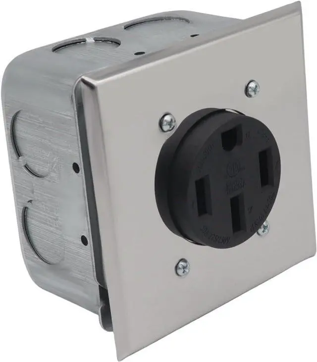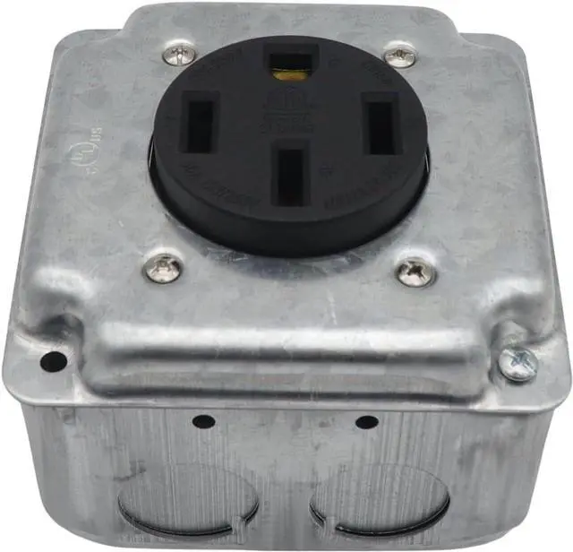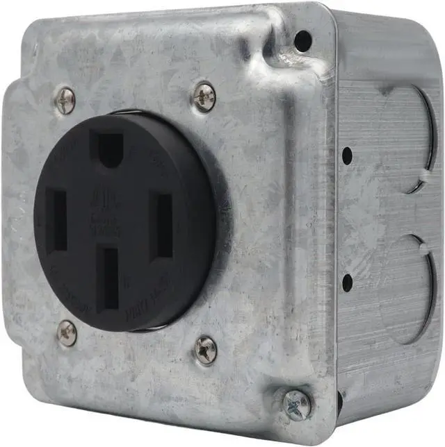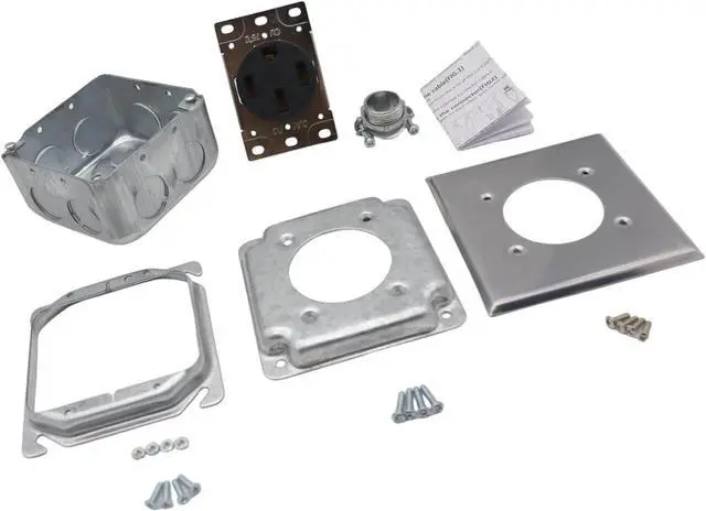 Practical 50A nemas 14 50R receptacle set with metal construction and accessories (junctions box, cable clamps, covers plate) for secure high current installations