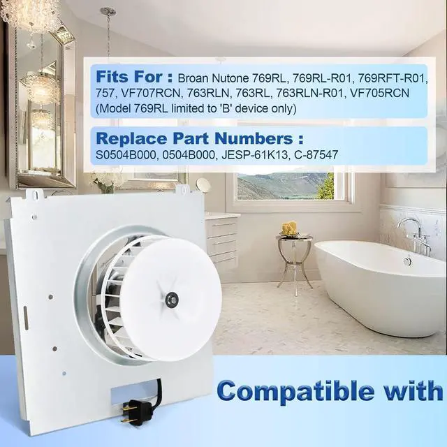 Compatible with models:Fits For Broan-Nutone 769RL, 769RL-R01, 763RLN, 763RL, 763RLN-R01, 769RFT-R01, 757, VF707RCN, VF705RCN (Model 769RL limited to 'B' device only).Replace Part Numbers: S0504B000, 0504B000, JESP-61K13, C-87547