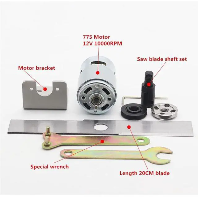 Packing List:1*775 Motor,1* Saw Blade Shaft Set,1* Motor Bracket,1* Special Wrench,1* Length 20cm Blade.