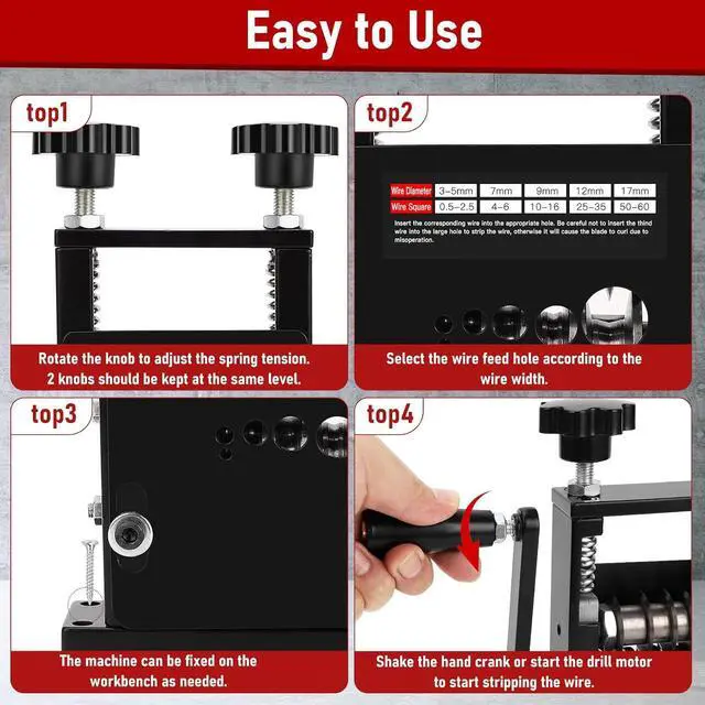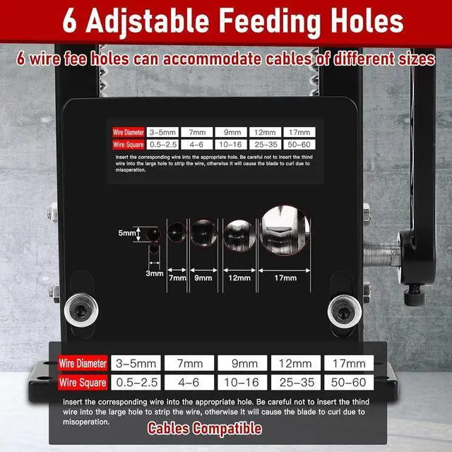 Durable and ReliableCrafted from alloy steel, the cable machine is built to last, its robust construction ensures durability and reliability, this tool is easy to operate and will seamlessly fit into your workflow for increased productivity, making it an essential tool for anyone dealing with wire stripping tasks on a regular basis