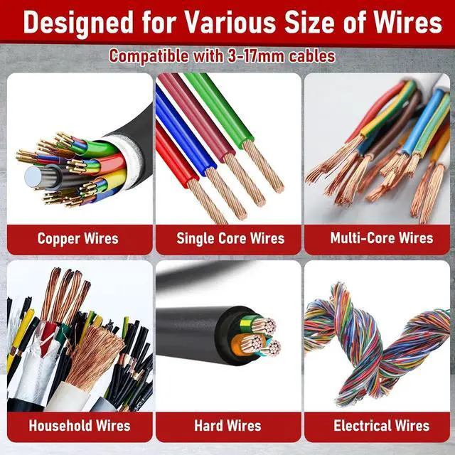 Versatile Wire StrippingFeaturing a 6 hole, 5 blade design, the cable stripping tool efficiently removes insulation from a variety of copper wire diameters ranging from 3 to 17 millimeters, its adaptability ensures it meets your specific needs, whether you're working with scrap wires, single coring cables, power cables, household wires, engineering cables, soft wires or hard wires