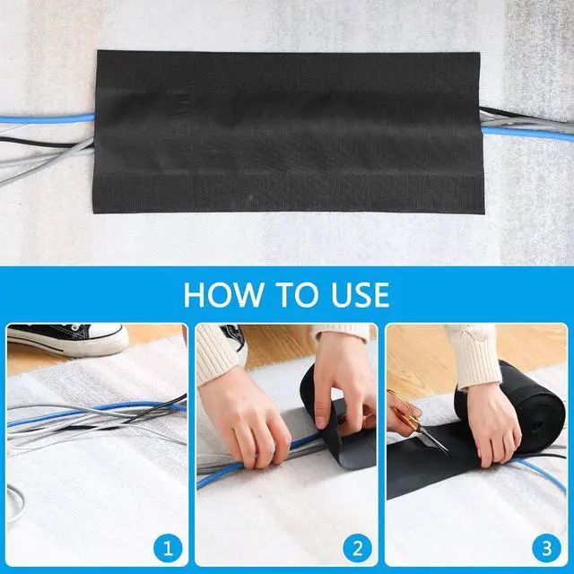 Delicate design: the long cord organizer adopts hook and loop design, ensuring strong grip and making it easy to open and close; The floor wire cover strip is easy to remove and clean without leaving sturdy residue, reusable for many times