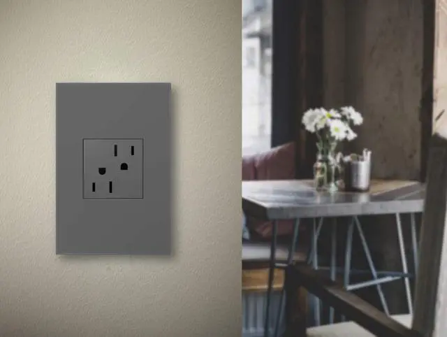 Configuration easily supports two plugs and offers the capacity of standard 20A outlet. Easily customized with adorne wall paltes available in a brilliant palette of 32 colors and a variety of luxurious materials.