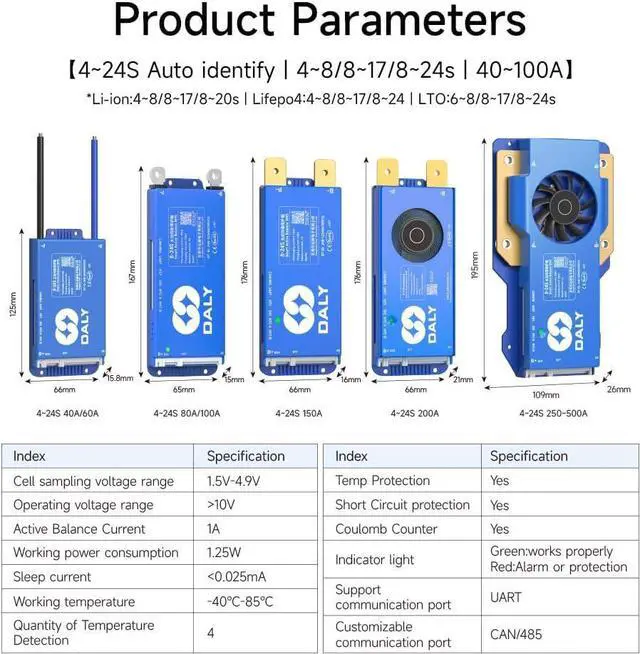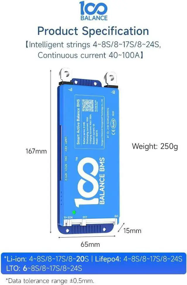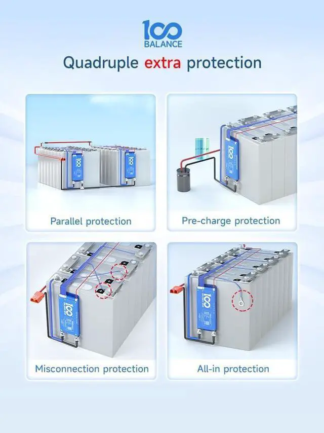 Enhanced Battery Safety:Daly 100balance active balance BMS offers protection against overcharging, overdischarging, overcurrent,short circuits and extreme temperature,ensuring the safety and longevity of the battery pack.