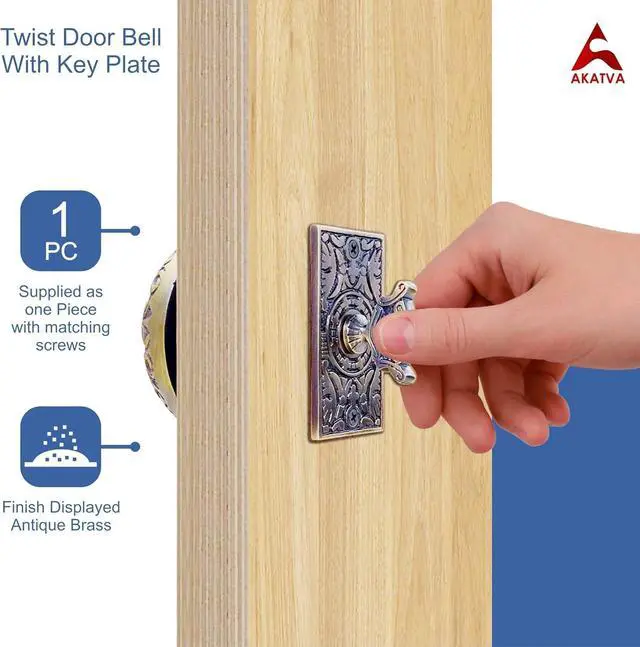 VINTAGE TWIST BELL WITH KEY PLATE Tired of doorbells with the artificial electronic cacophony that startles your ears? Presenting the Victorian twist bell with key plate by Akatva that is designed to announce the arrival of your guests with a delightful chime, without driving you nuts. Never miss anyone at the door with our superior home twist bell.