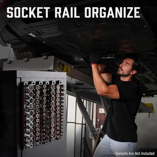 Heavy-duty Aluminum Construction: Engineered with a sturdy aluminum body and high-quality stainless clips, the socket organizer can hold sockets on the clips firmly and withstand multiple uses. The Metal rail body will not warp under full clip load, making it highly portable and ideal for worksites.