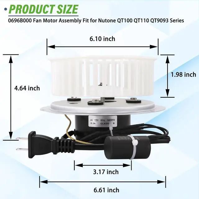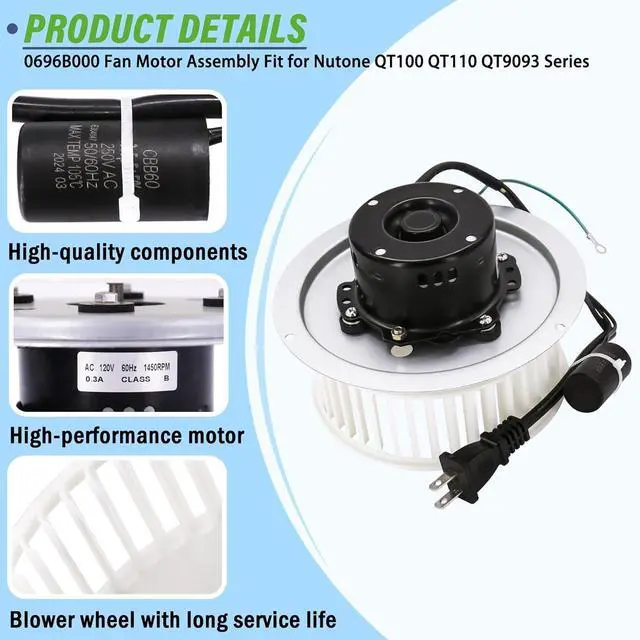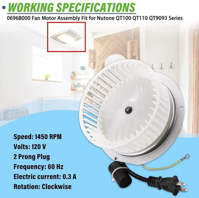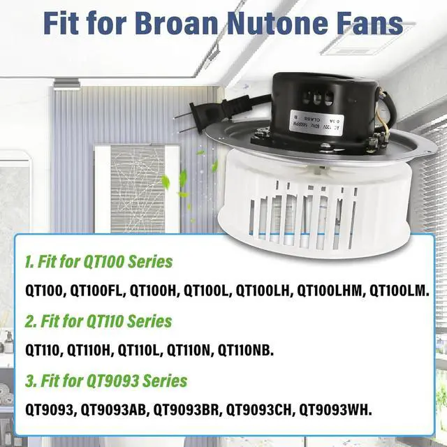 Properly Fit: The 0696B000 Motor Assembly compatible with Bro-an Nu-tone QT100 QT110 and QT9093 Series: QT100, QT100FL, QT100H, QT100L, QT100LH, QT100LHM, QT100LM, QT110, QT110H, QT110L, QT110N, QT110NB, QT9093, QT9093AB, QT9093BR, QT9093CH, QT9093WH