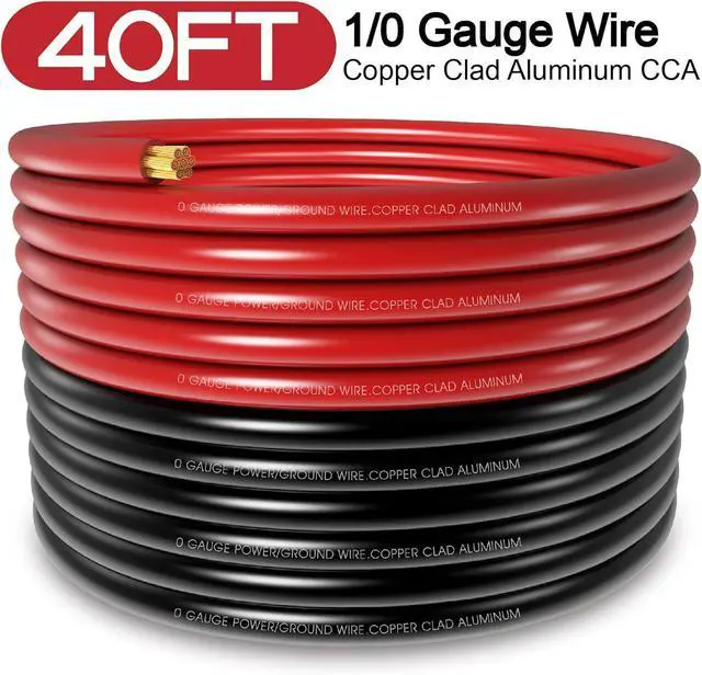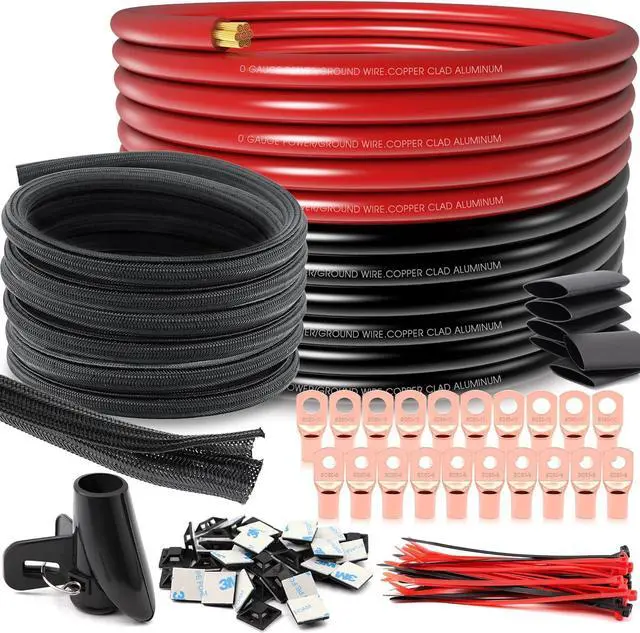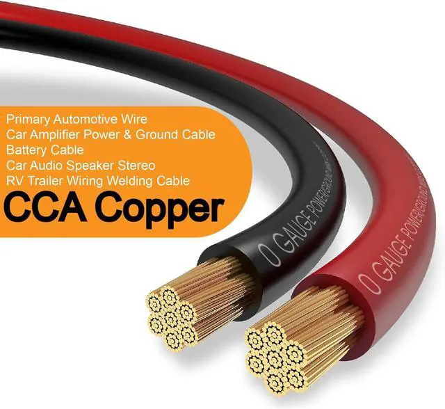 0 Gauge CCA Cable,Flexible PVC Jacket,Loads of 250A,Length:Red &Black each 20ft.