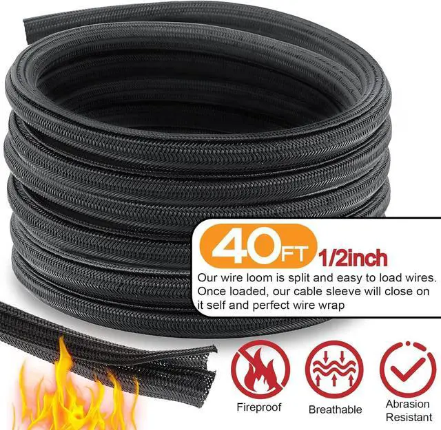 40Ft 1/2 inch PET Cable Sleeve,Once loaded,the cable sleeve will close on itself and perfect wire.
