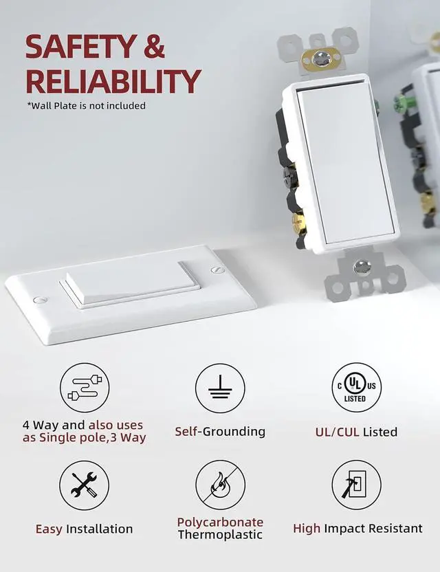 High QualityDesigned to last, our 4 way light switch features a sturdy construction made of high-quality, impact-resistant polycarbonate thermoplastic and solid steel for long-term service life.