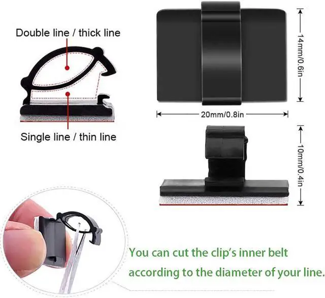 Wildly UseCable clips are useful for organizing computer cables, USB cables, TV cables, Christmas lights cable and stick on most surface in home, office and car.