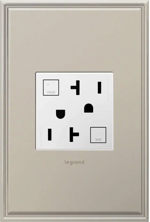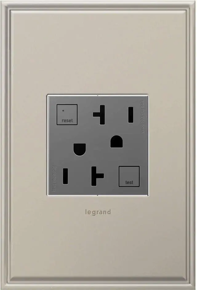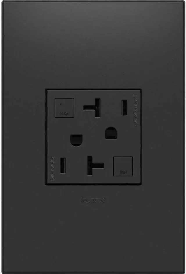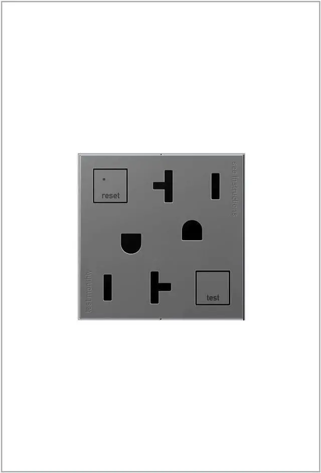 20A tamper-resistant GFCI 2-plug wall outlet. Magnesium finish. Plastic construction. Protects against serious injury from electric shock. Performs self-test every 3 seconds to guard against unsafe conditions.