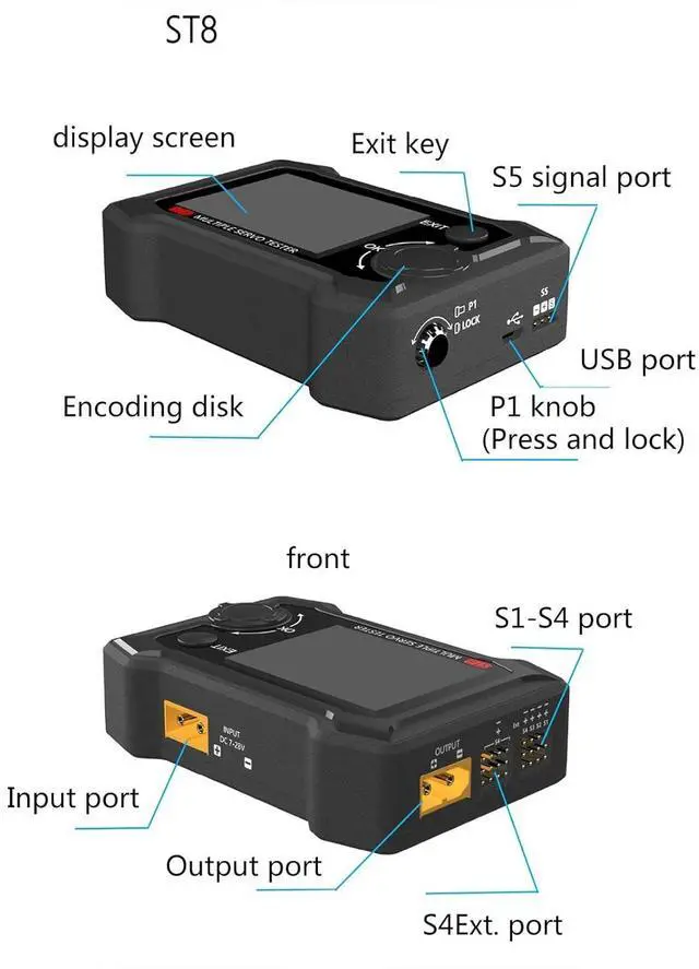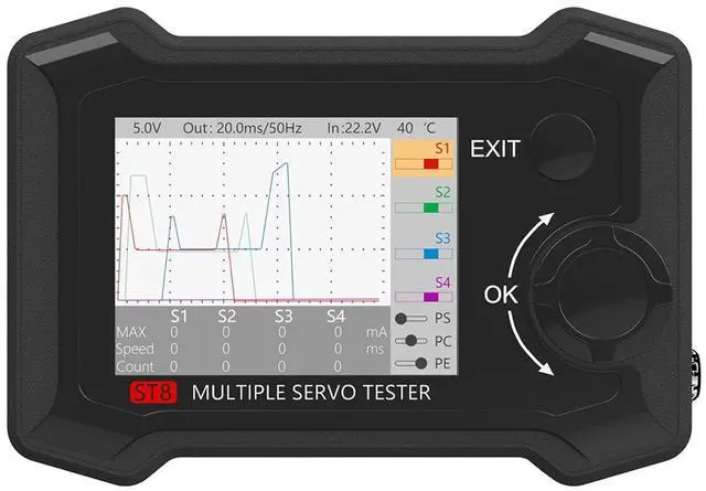 ST8 is data tester which is capable to test the voltages, energy, current, speed and data of the Servos.