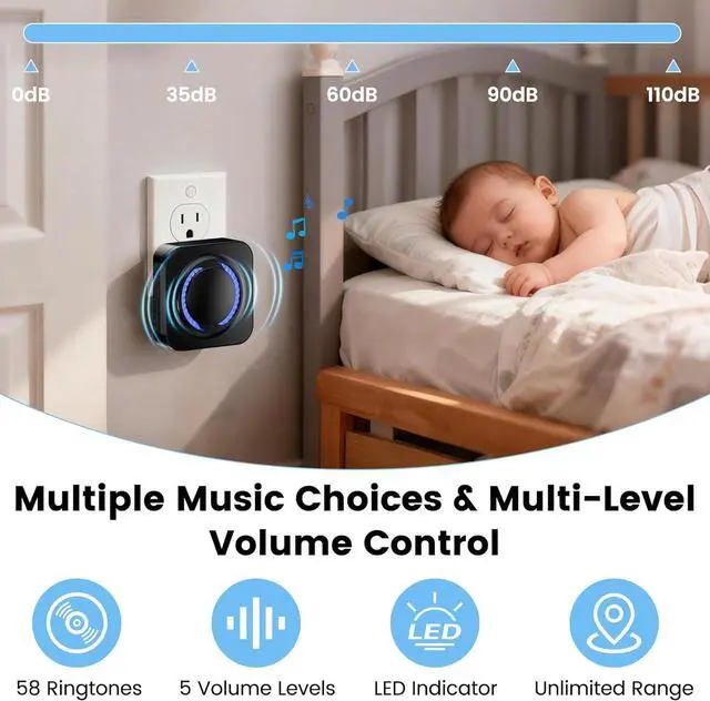 Adjustable Volume & Modes Choose from five sound levels (0110 dB) and three operation modes LED-only (silent), sound-only, or sound-and-LED perfect for any home environment or noise level.