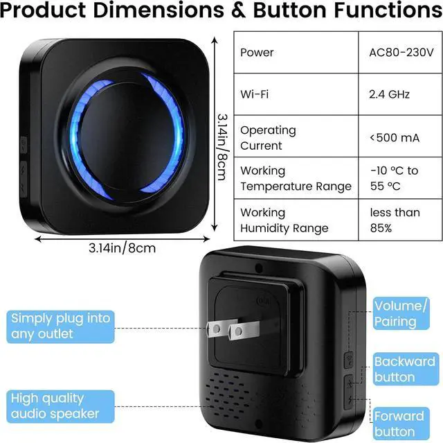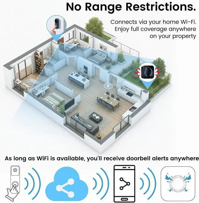Wi-Fi Extended Coverage Receive alerts anywhere your Wi-Fi reaches. Unlike traditional wired chimes, this wireless doorbell extender transmits signals through the cloud, ensuring stable performance across rooms, basements, or large houses.