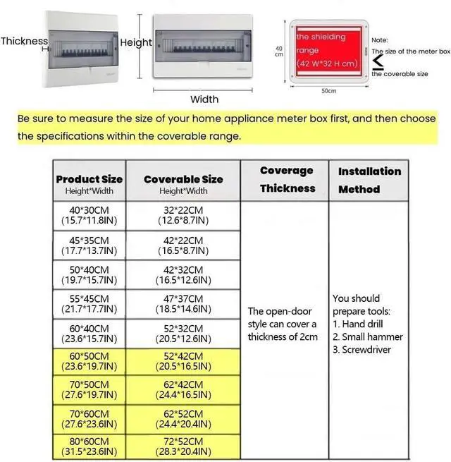 Versatile Size Options: Choose from 4 different sizes to ensure a perfect fit for walls protruding up to 2 cm thick. Our covers seamlessly integrate with your electrical cabinet, offering a tailored solution. Note: Please measure the size carefully before purchasing so that you can choose the right size.